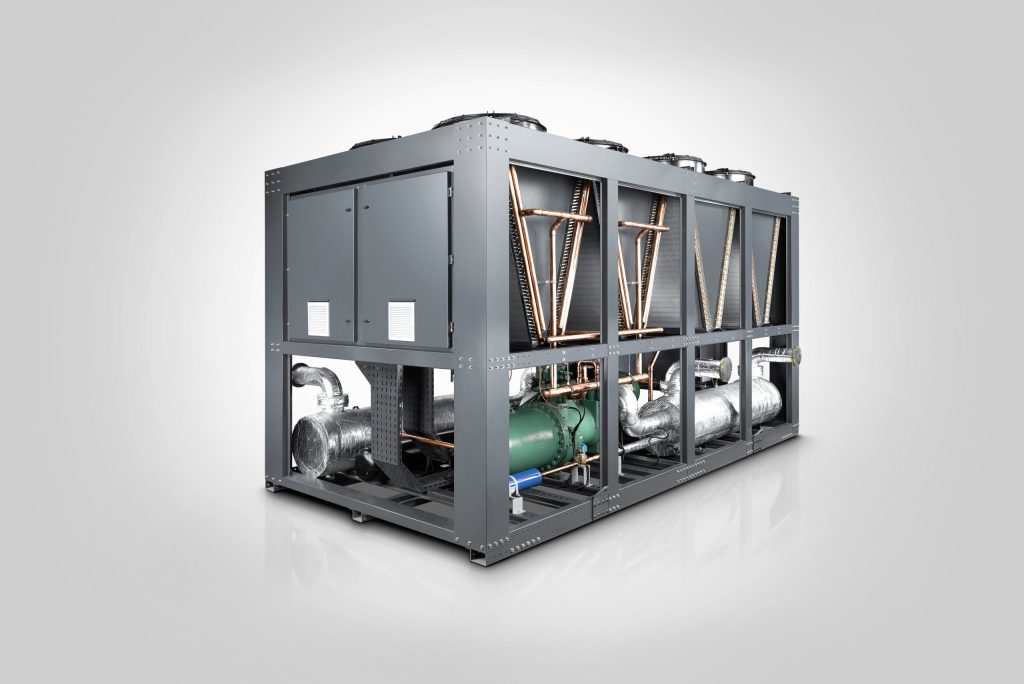 چیلر هوا خنک در این نوع چیلر، هوا به عنوان سیال سرمایشی به کار میرود. چیلرهای هوا خنک به دلیل نصب سادهتر و هزینههای نگهداری کمتر، برای پروژههای کوچک و متوسط مناسب هستند.
