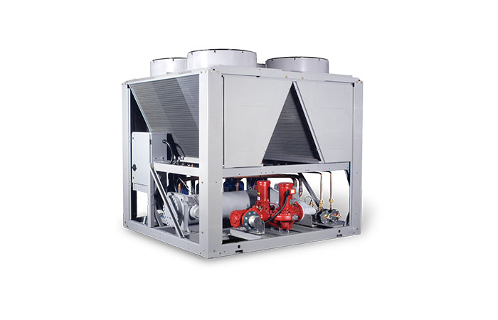 چیلر هوا خنک (Air-Cooled Chiller): در این نوع، گرمای تولید شده توسط کمپرسور از طریق هوا دفع می‌شود و نیاز به برج خنک‌کن ندارد. این چیلرها مناسب ساختمان‌های مسکونی و تجاری متوسط هستند.